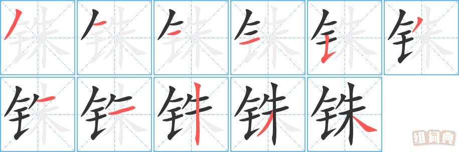 第六笔:撇 第七笔:横 第八笔:横 第九笔:竖 第十笔:撇